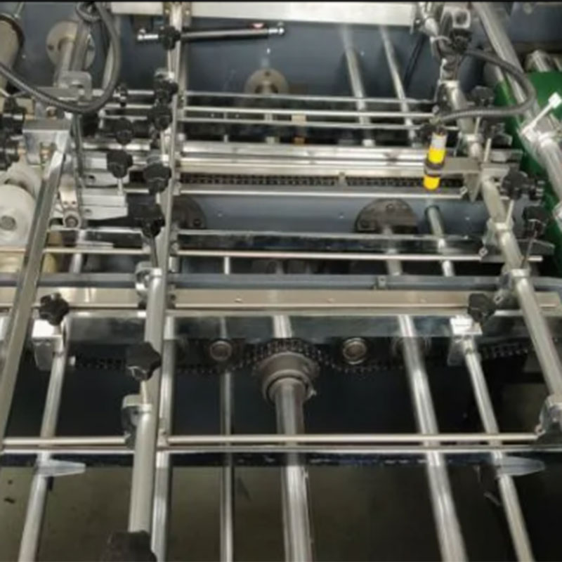 Das Papier -Fütterungsteil wird von einem Servomotor gesteuert. Der Papierhaufen bewegt sich zeitweise mit der Papierstütze. Der Gürtel hat eine lange Lebensdauer und kann schrittweise Papierprodukte in stabiler und ordentlicher Weise trennen und transportieren.