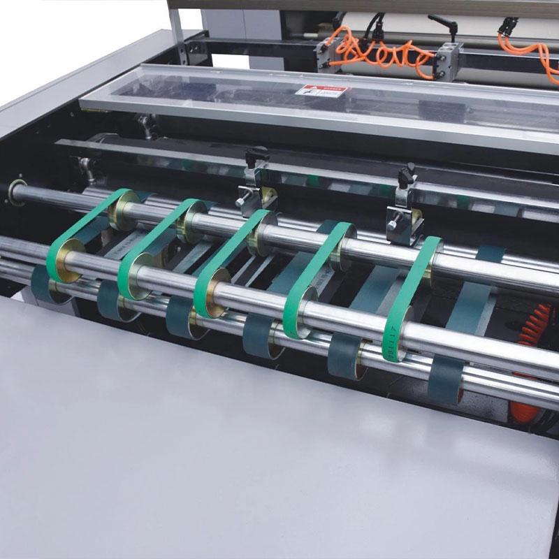 Vorderlegearbeit mit Servomotor für automatische Überlappung, Verbesserung der Genauigkeit der Überlappung. Einfachere Bedienung durch Einstellen der Papierlänge über den Touchscreen